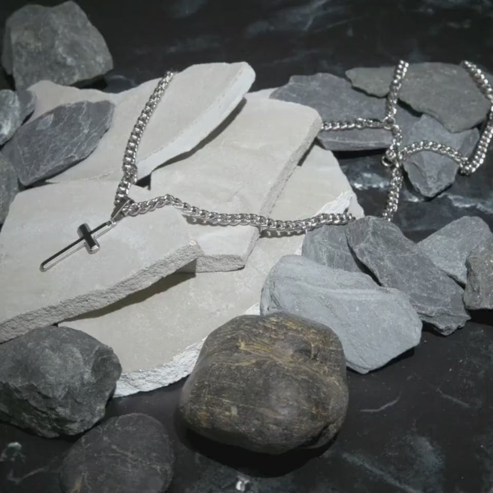 Sizing is appropriate for all ages, and tasteful for both men and women. Crafted in high polished stainless steel, this piece will resist tarnishing and is hypoallergenic for sensitive skin. Personalize a message on the back of the cross pendant up to 20 characters. Includes an adjustable cuban link chain (18" - 22").